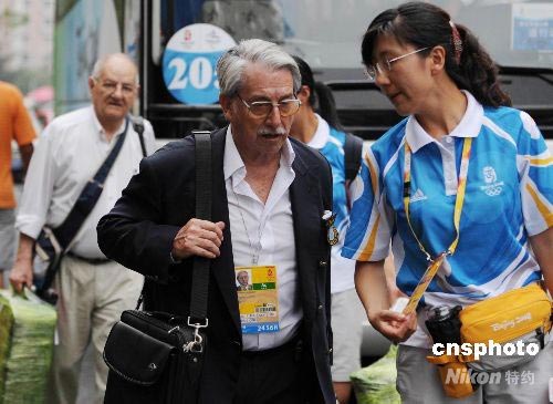 七月二十七日,青島奧運(yùn)村舉行開村升旗儀式,各國帆船運(yùn)動(dòng)代表團(tuán)的運(yùn)動(dòng)員紛紛入住青島奧運(yùn)村,進(jìn)入奧帆賽最后實(shí)戰(zhàn)準(zhǔn)備階段。圖為中國志愿者在與外國帆船教練進(jìn)行交流提供幫助。中新社發(fā) 曲連遵 攝