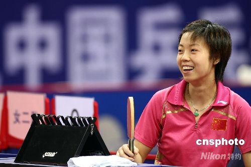 7月28日,中國(guó)乒乓球隊(duì)備戰(zhàn)奧運(yùn)熱身賽在無(wú)錫體育中心拉開(kāi)帷幕。男子團(tuán)體分4隊(duì)進(jìn)行淘汰賽,女子團(tuán)體分4個(gè)隊(duì)進(jìn)行單循環(huán)比賽。此次熱身賽還設(shè)立了男子單打擂臺(tái)賽。圖為張怡寧比賽前在裁判席上笑看隊(duì)友訓(xùn)練。中新社發(fā) 盛佳鵬 攝