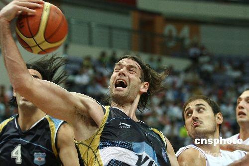 7月31日,國際籃聯(lián)2008鉆石杯男籃比賽繼續(xù)在江蘇南京進行。在塞爾維亞男籃與阿根廷隊的比賽中,阿根廷隊員奧博托在進攻中怒吼。最終阿根廷以75比60勝出。中新社發(fā) 盛佳鵬 攝