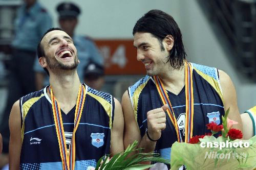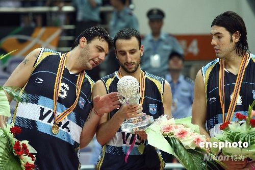 8月1日晚,國際籃聯(lián)2008鉆石杯男籃比賽的決賽在阿根廷隊(duì)與澳大利亞隊(duì)之間打響,最終阿根廷隊(duì)在第三節(jié)一度落后19分的情況下,上演大逆轉(zhuǎn),最終以95:91戰(zhàn)勝對(duì)手,奪得冠軍。中新社發(fā) 盛佳鵬 攝