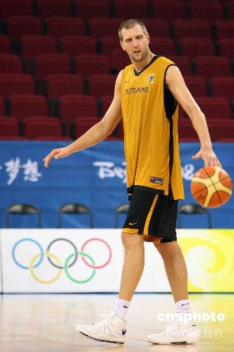 8月4日下午,參加北京奧運會的德國男籃在北京奧運會籃球比賽館--五棵松籃球館進行抵達北京后的首場訓(xùn)練。效力于NBA達拉斯小牛隊的德國巨星諾維斯基在球場內(nèi)開始他的“奧運夢想”之旅。德國男籃是中國男籃小組出線的勁敵,雙方都想將對手擊敗而進入八強。中新社發(fā) 任晨鳴 攝