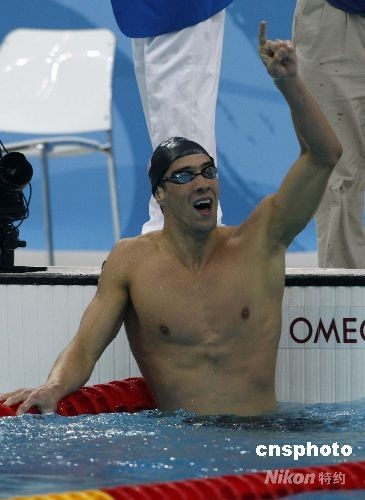 8月10日,美國(guó)選手菲爾普斯獲得北京奧運(yùn)會(huì)男子400米個(gè)人混合泳冠軍,菲爾普斯以4分3秒84打破了他個(gè)人保持的男子400米個(gè)人混合泳世界紀(jì)錄,這是北京奧運(yùn)會(huì)上的第一項(xiàng)世界紀(jì)錄。