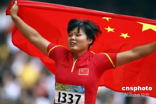 9月8日,北京殘奧會田徑比賽在北京國家體育場“鳥巢”進(jìn)行首日比賽,中國選手姚娟在女子標(biāo)槍比賽中獲得殘奧田徑首枚金牌,并打破該項(xiàng)目世界紀(jì)錄。中新社發(fā) 杜洋 攝