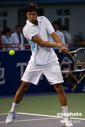 在9月24日下午進(jìn)行的中網(wǎng)男子單打首輪比賽中,中國年輕選手柏衍連丟兩盤負(fù)于日本選手添田豪,無緣下一輪。中新社發(fā) 王韶驊 攝