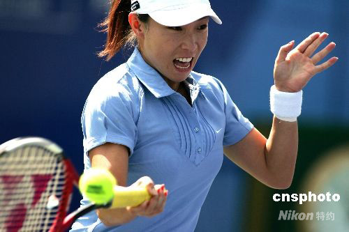 9月25日,2008年中國網(wǎng)球公開賽繼續(xù)進(jìn)行,女單賽場(chǎng)碩果僅存的中國金花鄭潔僅用時(shí)69分鐘就以6-1,6-2橫掃日本老將杉山愛,昂首挺進(jìn)女單8強(qiáng)。鄭潔很可能在4分之1決賽中與2號(hào)種子塞爾維亞美少女伊萬諾維奇狹路相逢。中新社發(fā) 富田 攝
