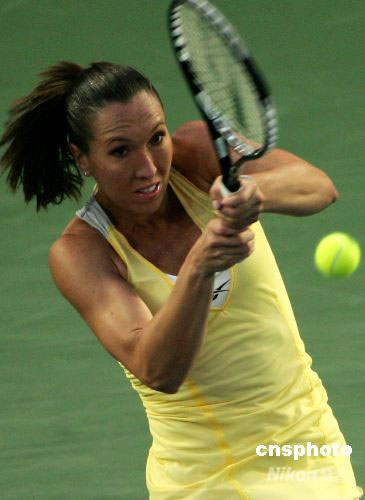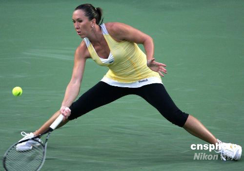 9月27日,2008年中國網(wǎng)球公開賽開始女單半決賽爭奪。頭號(hào)種子塞爾維亞美女揚(yáng)科維奇以6-4、2-6、6-4的比分戰(zhàn)勝俄羅斯紅粉5號(hào)種子茲沃娜列娃,率先晉級(jí)決賽。中新社發(fā) 富田 攝