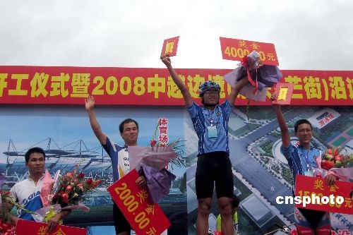 11月2日,首屆中越邊境(東興—芒街)沿邊自行車邀請(qǐng)賽在廣西東興沿邊公路舉行。此次邀請(qǐng)賽共有77名參賽選手,其中越南籍選手18人。今次比賽從廣西東興市體育館出發(fā),途經(jīng)晚清和越南法國(guó)殖民當(dāng)局劃界所立的“一號(hào)界碑”,全程25公里。中新社發(fā) 袁鶯 攝