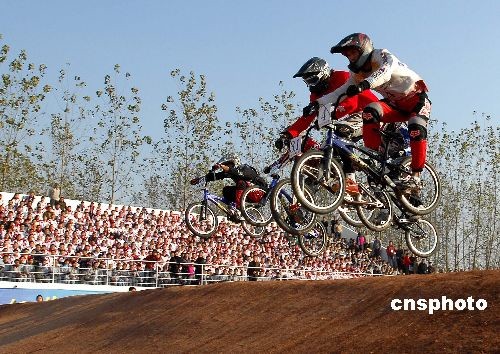 2008年11月10日,由國家體育總局自行車擊劍運(yùn)動管理中心主辦、江蘇省宿遷市人民政府承辦的“洋河藍(lán)色經(jīng)典”全國自行車BMX(即小輪車)冠軍賽在宿遷開賽。來自全國16個(gè)省市小輪車專業(yè)隊(duì)、俱樂部,代表著我國BMX競速最高水平的100余名運(yùn)動員,參加了成年男子、成年女子、青年女子組的比賽。2008年全國BMX小輪車冠軍賽共分五站進(jìn)行,11月10日~12日的第一站、第二站比賽在江蘇宿遷舉行。中新社發(fā) 柏志勇 攝