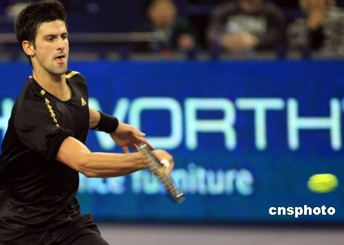 11月13日,在上海旗忠網(wǎng)球中心進行的上海大師杯單打金組最后一輪的比賽中,此前已經(jīng)兩戰(zhàn)皆北的法國“阿里”特松加在晉級無望的情況下勇于拼搏上演大逆轉,以2比1戰(zhàn)勝世界排名第三的塞爾維亞選手德約科維奇,三盤比分是1-6/7-5/6-1,贏得榮譽之戰(zhàn)。中新社發(fā) 湯彥俊 攝