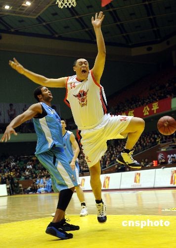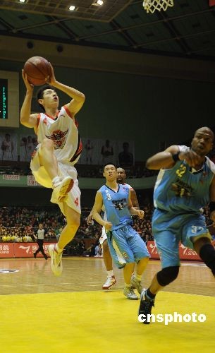2008年11月19日,2008-2009CBA聯(lián)賽常規(guī)賽第2輪比賽在山東濟(jì)南舉行,主場(chǎng)作戰(zhàn)的山東黃金男籃以116-89戰(zhàn)勝北京金隅男籃。中新社發(fā) 張侃 攝