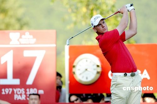 1130日,瑞典代表隊(duì)選手羅伯特.卡爾森與搭檔亨利克.斯滕森以-27桿的總成績奪得2008歐米茄觀瀾湖高爾夫世界杯冠軍。圖為瑞典名將卡爾森在17號(hào)發(fā)球臺(tái)開球。中新社發(fā) 陳文 攝
