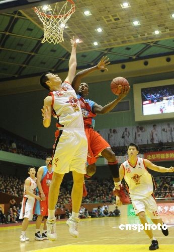 11月30日,2008-2009CBA聯(lián)賽常規(guī)賽第7輪比賽在山東濟(jì)南的比賽中,主場作戰(zhàn)的山東黃金男籃96:106不敵新疆廣匯男籃。中新社發(fā) 張侃 攝