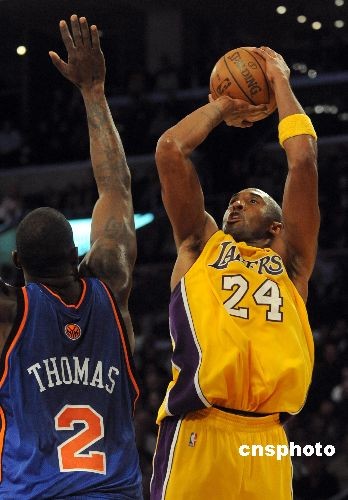 當(dāng)?shù)貢r(shí)間12月16日晚,NBA洛杉磯湖人隊(duì)主場(chǎng)迎戰(zhàn)紐約尼克斯隊(duì),結(jié)果上演驚險(xiǎn)大逆轉(zhuǎn),以116比114險(xiǎn)勝對(duì)手。其中湖人科比·布萊恩特一人拿下28分。中新社發(fā) 張煒 攝