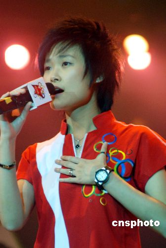 10月24日晚,海南“2008北京奧運會火炬手頒獎禮”在?谂e行。李平、譚麗林、凌萍、韓燕等10人當選為可口可樂2008奧運火炬手。據(jù)悉,經(jīng)北京奧組委審核后,這10名火炬手將正式成為北京奧運會火炬手。超女冠軍李宇春現(xiàn)身現(xiàn)場演唱助興。據(jù)悉,海南是2008北京奧運火炬?zhèn)鬟f首傳省。中新社發(fā) 善平 攝