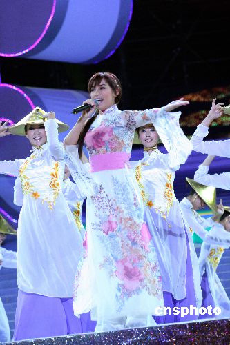 十月二十八日晚,第九屆南寧國際民歌節(jié)暨第四屆中國—東盟博覽會開幕式晚會在廣西南寧舉行。東南亞性感“天后”范菲蓉演唱節(jié)奏明快的越南歌曲《難忘的黑馬》,全場歌迷為之雀躍。中新社發(fā) 曾德軍 攝