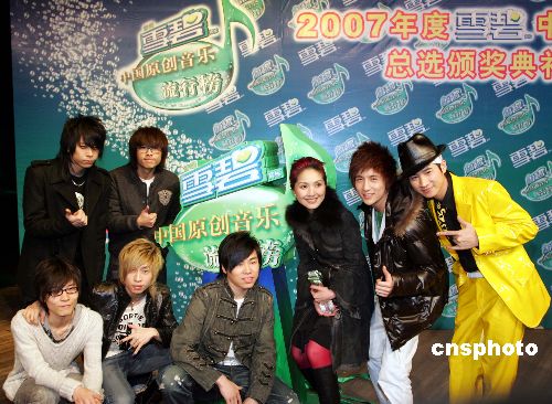 十二月四日,人氣女王楊千嬅、人氣小天王胡彥斌,以及王嘯坤、薛之謙、俞思遠(yuǎn)、海明威等眾明星在上海,啟動2007年度“雪碧”中國原創(chuàng)音樂流行榜拉票活動。據(jù)介紹,歷時(shí)七年的雪碧音樂榜,旨在展示“享受音樂,表達(dá)自我”的音樂理念。中新社發(fā) 潘索菲 攝