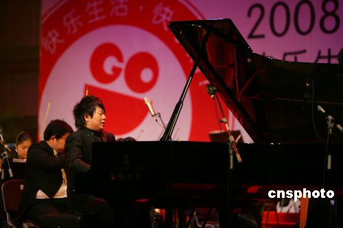 12月28日晚,青年鋼琴演奏家郎朗在長沙舉行“快樂生活快樂購·郎朗乾坤2008新年感恩鋼琴音樂會”。上半場郎朗和湖南省交響樂團合作表演了《黃河》,下半場獨奏時間里,郎朗演奏了莫扎特降B大調(diào)鋼琴奏鳴曲等世界名曲。中新社發(fā) 鄧霞 攝