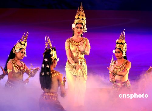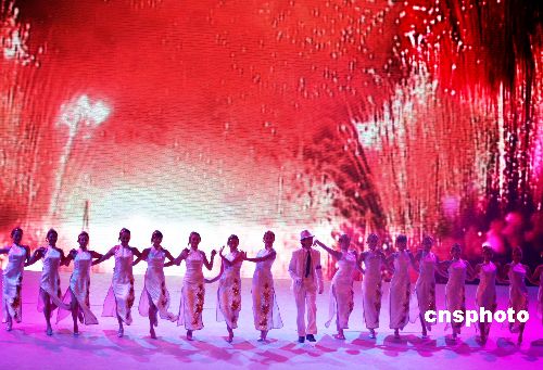 中國中央電視臺2008元旦雙語(漢語、英語)晚會,12月31日晚在北京歡樂谷華僑城大劇院隆重舉行,中央電視臺國際頻道向全世界實(shí)況直播。晚會除中國演員外還有日本、韓國、泰國、馬來西亞、新加坡、印度等國家的藝術(shù)家登場獻(xiàn)藝,通過歌曲、舞蹈、雜技、魔術(shù)、服裝秀、戲曲等藝術(shù)形式,向全球華人送去新年祝福。中新社發(fā) 宋吉河 攝