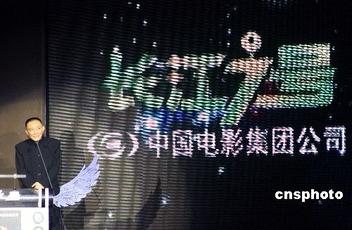 2008年1月24日,周星馳新作《長江七號》在北京歡樂谷舉行盛大的首映慶典,《長江七號》在此揭開它的神秘面紗。圖為韓三平為《長江七號》致詞。中新社發(fā) 仲兆華 攝