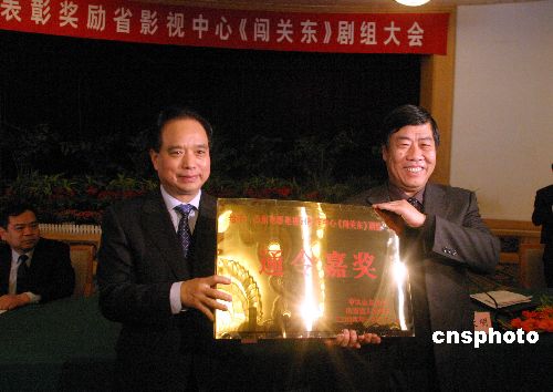 1月31日,山東省委、省政府在濟(jì)南召開表彰大會,對《闖關(guān)東》劇組通令嘉獎,并向山東電影電視劇制作中心頒發(fā)獎金200萬元。據(jù)悉,《闖關(guān)東》在央視一套播出后,收視率創(chuàng)央視開年大戲的新高。中新社發(fā) 龔輝 攝