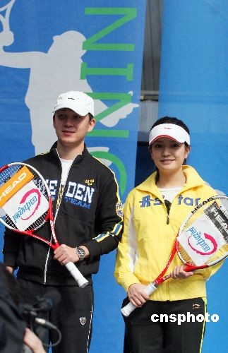 3月27日,2008“中網(wǎng)網(wǎng)動中國”推廣活動在北京航空航天大學(xué)網(wǎng)球館舉行。趙薇、潘粵明作為2008“中網(wǎng)網(wǎng)動中國”的代言人出席該活動。中新社發(fā) 博芽影像 攝