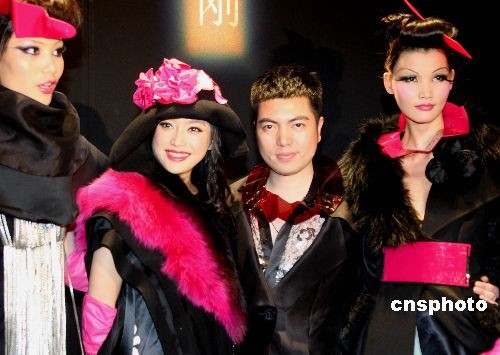 3月28日晚,以“寵愛(ài)”為主題的中國(guó)國(guó)際時(shí)裝周SEC2008秋冬高級(jí)成衣發(fā)布會(huì)在北京精彩登場(chǎng),給觀眾帶來(lái)一場(chǎng)震撼的視覺(jué)盛宴。圖為演員秦嵐(左二)與設(shè)計(jì)師祁剛(左三)亮相發(fā)布會(huì)。中新社發(fā) 趙雋 攝