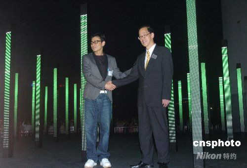 四月十一日晚,由香港藝術(shù)發(fā)展局主辦、Microwave籌辦的“燈陸‧亞高高”聲光互動媒體藝術(shù)展在香港尖沙嘴星光大道開幕,民政事務(wù)局局長曾德成與影星劉德華在揭幕后,率先體驗由英國著名國際藝術(shù)團隊United Visual Artists (UVA)創(chuàng)作的“Volume”所帶來的視聽覺體驗。中新社發(fā) 鄧慶樂 攝