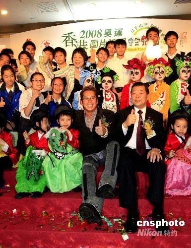 “精彩瞬間,永恒奧運(yùn)-香港·2008奧運(yùn)圖片巡展”四月二十五日在香港中央圖書館開幕,香港著名歌星譚詠麟被邀擔(dān)任主禮嘉賓,并接受多家媒體采訪談對(duì)北京奧運(yùn)會(huì)的期待。譚詠麟(左)、文匯報(bào)社長張國良與學(xué)生們合影留念。中新社發(fā) 王麗南 攝