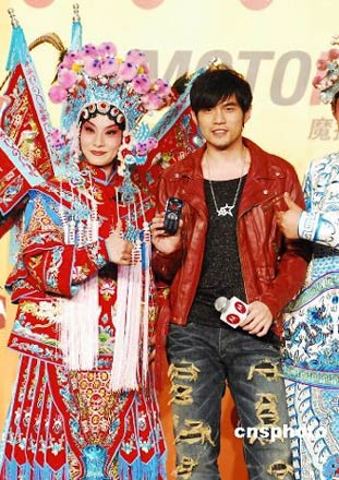 周杰倫在某代言活動(dòng)現(xiàn)場(chǎng)吊嗓學(xué)京劇