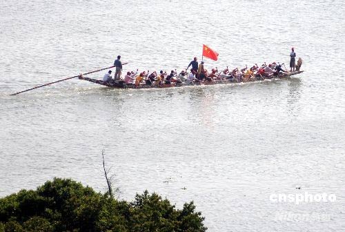 5月11日下午,北京奧運(yùn)火炬在福州最美的江濱大道上進(jìn)行傳遞,福州民眾在閩江劃龍舟追隨火炬?zhèn)鬟f隊(duì)伍。 中新社發(fā) 王東明 攝