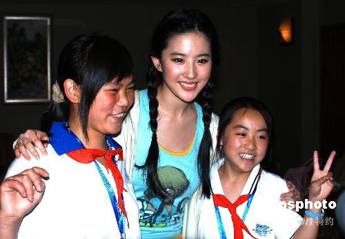 6月2日,89名來自四川北川、彭州、寶興、崇州等地震災(zāi)區(qū)失去親人的兒童,乘坐南方航空海南分公司的愛心專機(jī)抵達(dá)海南三亞,進(jìn)行為期半個(gè)月的“愛心呵護(hù)、陽光行動”心靈呵護(hù)之旅。著名影星劉亦菲當(dāng)日專程趕到孩子們?nèi)胱〉娜齺喬煊蚨燃倬频昕赐。中新社發(fā) 尹海明 攝