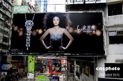 香港樂壇明星陳慧琳十八日晚在紅磡體育館舉行演唱會(huì)時(shí)突然宣布婚訊,嫁給與之相戀了十六年的男友劉建浩,并與歌迷約定,結(jié)婚后不會(huì)退休,待生了孩子后會(huì)再來紅館開演唱會(huì)。曾在美國修讀建筑的劉建浩,畢業(yè)后回港打理父親制衣生意,后自組公司。圖為香港街頭陳慧琳代言的巨大廣告。中新社發(fā) 王麗南 攝