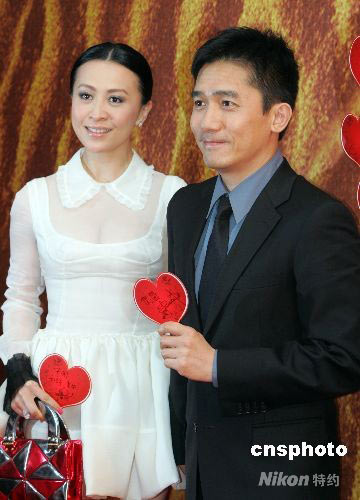 6月21日晚,梁朝偉攜手劉嘉玲在上海出席《東邪西毒》終極版慈善首映,向四川災(zāi)區(qū)獻出自己的愛心,本場電影的票房將悉數(shù)捐給四川災(zāi)區(qū)。中新社發(fā) 湯彥俊 攝