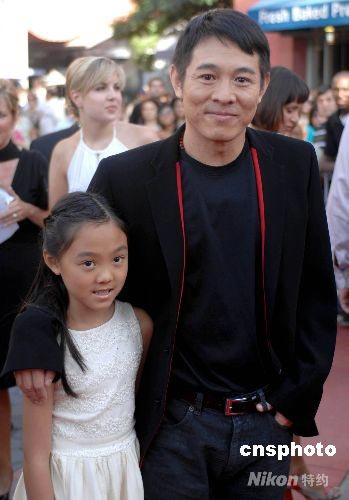 環(huán)球影業(yè)七月二十七日在好萊塢舉行《木乃伊3:龍帝之墓》首映式,片中“漢皇”的扮演者、著名功夫影星李連杰攜愛女Jane出席首映式。中新社發(fā) 張煒 攝