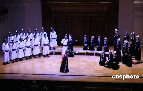 當地時間8日晚,內蒙古民族歌舞劇院蒙古族青年合唱團在倫敦卡杜甘音樂廳(Cadogan Hall)進行無伴奏合唱演出。中新社發(fā) 李鵬 攝