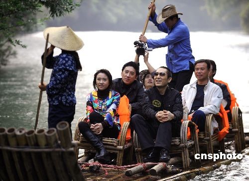11月17日,著名的“鐵三角導(dǎo)演” 張藝謀、王潮歌和樊躍共同亮相福建省的風(fēng)景名勝武夷山景區(qū),對(duì)景區(qū)進(jìn)行考察和采風(fēng),并參加了“九曲溪”水上漂流活動(dòng),這標(biāo)志著 “印象系列”山水實(shí)景演出的又一作品——《印象大紅袍》正式啟動(dòng)。這也是繼2008北京奧運(yùn)會(huì)和殘奧會(huì)開(kāi)、閉幕式成功舉辦之后,張藝謀、王潮歌和樊躍合作推出的又一個(gè)“印象系列”的項(xiàng)目。 中新社發(fā) 劉鷹 攝