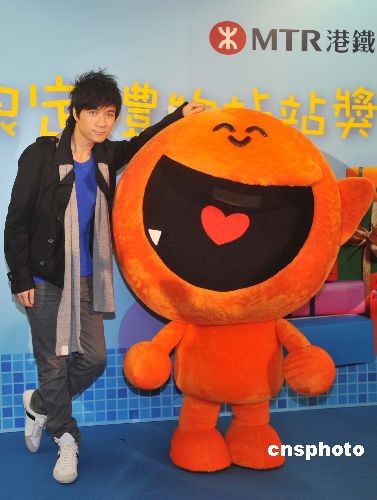 十一月二十四日,香港歌星古巨基帶著其設計的“愛兒” Kubi,出席港鐵友禮會“站站獎”宣傳活動。中新社發(fā) 鄧慶樂 攝