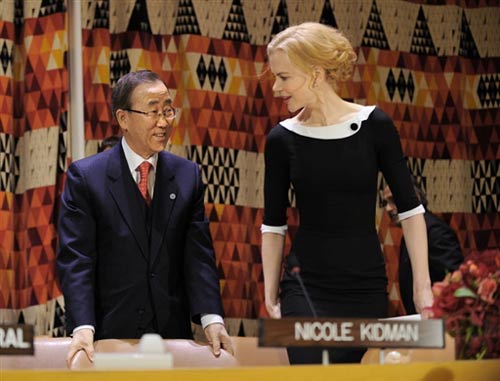 妮可亮相聯(lián)合國(guó)總部 潘基文為其扶座椅