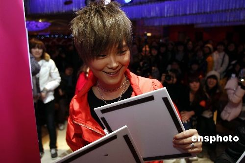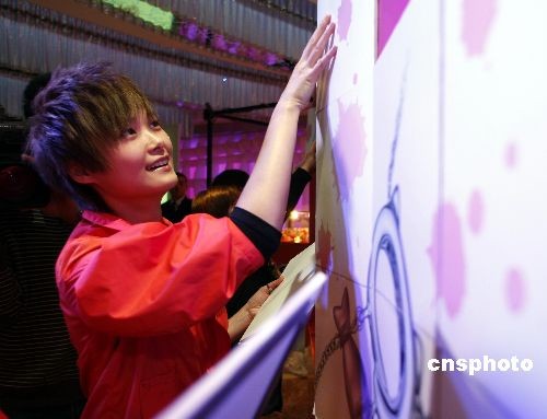 12月下旬,人氣藝人李宇春在北京出席新銳配飾品牌ctf2舉辦的“2008我的彩色夢(mèng)想”頒獎(jiǎng)儀式,并與眾多時(shí)尚彩繪愛(ài)好者進(jìn)行互動(dòng)游戲。該活動(dòng)上展示了ctf2在2008年從全國(guó)10所高校與社會(huì)征集來(lái)的近千幅CoCo Cat新形象作品,揭曉2009年ctf2 CoCo女郎最新形象。李宇春現(xiàn)場(chǎng)為獲獎(jiǎng)?wù)哳C獎(jiǎng)。中新社發(fā) 楊可佳 攝