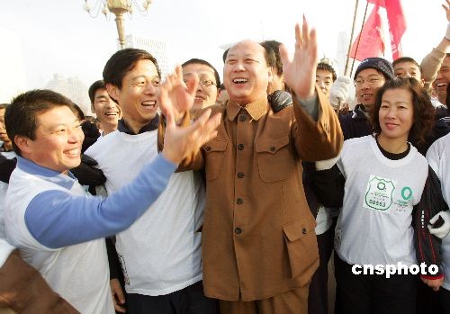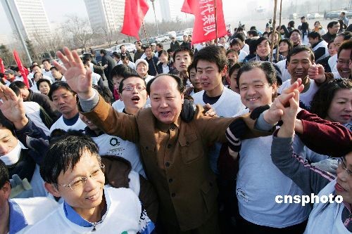 12月26日上午,長相酷似偉人毛澤東的特型演員張向東先生應邀來到山東濰坊,一露面便吸引了當?shù)卦S多市民與其合影留念。張向東從形象、口音到發(fā)型與一代偉人毛澤東的貌相十分相似,許多市民都為其扮相逼真叫絕。中新社發(fā) 張馳 攝