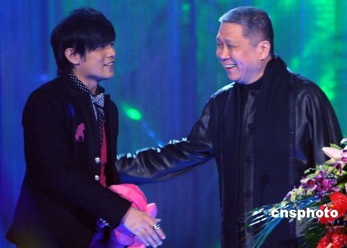 12月28日,“音樂·愛”2008中國移動無線音樂咪咕匯在北京舉行,著名收藏夾馬未都為周杰倫揭開獎項。馬未都說他對周杰倫的《青花瓷》很熟悉,“我在百家講壇上講十個青花瓷不敵周杰倫在春晚上唱一支歌。”他希望周杰倫將來把中國的青花瓷都寫成歌。周杰倫當晚奪得無線音樂最高銷量男歌手。該獎項由中國移動舉辦,以歌手在其手機網(wǎng)絡平臺上歌曲下載數(shù)量為主要評判依據(jù)。中新社發(fā) 廖攀 攝