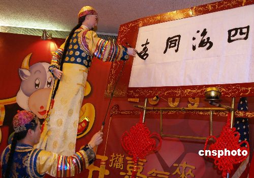 1月16日,中國駐洛杉磯總領(lǐng)館舉行“2009華僑華人新春招待會”,中領(lǐng)館多功能大廳大紅燈籠高高掛,充滿濃濃的過年味。總領(lǐng)事張云率全體領(lǐng)事與600多位華人華僑代表歡聚一堂,共慶牛年的到來。中新社發(fā) 盧威 攝