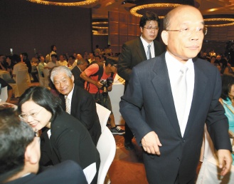 據(jù)報道,民進黨北二都市長參選人蘇貞昌和蔡英文昨晚共同出席一場募款餐會,兩人同坐主桌,但互動不多。蔡英文先上臺致詞,主持人介紹蘇貞昌進場時,蔡英文也跟著舉手高喊“沖沖沖”。蘇貞昌上周也現(xiàn)身臺北縣,為蔡英文拉票。