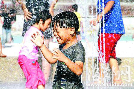。天氣太熱,很多人選擇到溪河里泡水解暑,有的到大百貨商店吹冷氣,孩子們則選擇了到廣場(chǎng)的噴水池嬉水。動(dòng)物們也熱得受不了,動(dòng)物園給猴子們準(zhǔn)備了冰塊降溫,外出的狗狗們則被戴上了太陽(yáng)鏡,遮擋熾熱的陽(yáng)光。