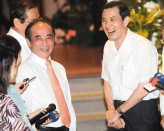 中新網(wǎng)7月15日電 據(jù)臺灣《聯(lián)合報》報道,臺“立法院”臨時會結束,“立法院長”王金平14日晚宴請馬英九,替他補過60歲生日。席間馬英九與“行政院長”吳敦義贊揚王金平領導“立法院”成功,通過各項重大法案,“在關鍵時刻發(fā)揮了關鍵影響力!瘪R、王、吳三人還在臺上高唱“你是我的兄弟”,氣氛熱絡。