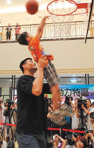 姚明說,很高興到高雄縣和災(zāi)區(qū)小朋友聊天交流,“希望能帶給大家愉快的體驗(yàn)”。他教導(dǎo)學(xué)生們灌籃技巧,以簡單的互動(dòng)教學(xué),傳達(dá)他的愛與關(guān)懷。
