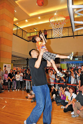 中新網(wǎng)7月27日日電 據(jù)臺(tái)灣《中國(guó)時(shí)報(bào)》報(bào)道,“謝謝姚明哥哥來(lái)看我們!”NBA球星姚明訪臺(tái)做公益,26日前往高雄的義大世界,與百余名八八水災(zāi)學(xué)童及初中籃球隊(duì)員相見(jiàn)歡。學(xué)生開(kāi)心拿起相機(jī)猛拍,當(dāng)面向他請(qǐng)教球技,為暑假留下美好回憶。