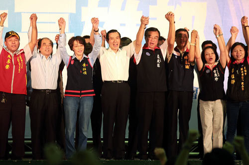 報道說,馬英九率領(lǐng)的中常會并為國民黨提名的市長及市議員參選人加油打氣,營造勝選氣勢。