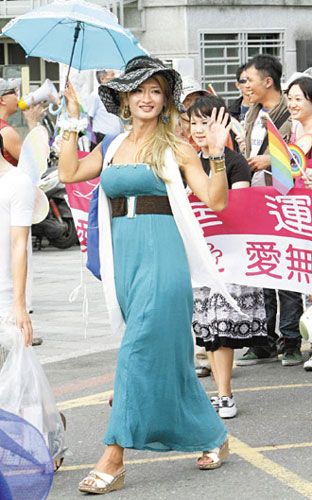 男“同志”小莫(化名)打扮成美麗的儀隊(duì)隊(duì)員,走在隊(duì)伍前端,背后還大方寫著:“I'm Gay,and you?”。他說,因?yàn)檐婈?duì)、儀隊(duì)是象征,而“同志”的權(quán)益長(zhǎng)期受到漠視,也需要努力捍衛(wèi)。高頭大馬的喬許(Josh)則男扮女裝成歌手凱莉•米洛。他表示,是因?yàn)閯P莉•米洛很支持“同志”運(yùn)動(dòng)。