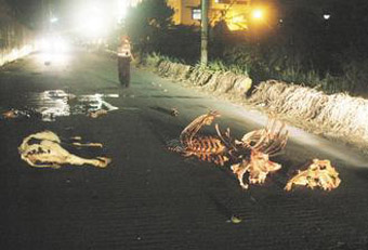 中新網(wǎng)9月27日電 據(jù)臺灣《聯(lián)合報》報道,臺灣云林縣北港鎮(zhèn)防汛道路25日晚驚見牛骨、牛頭、牛尸遍地,附近居民被腥味熏到難以入眠,路過的駕駛員被尸體嚇到,以為是棄嬰,險些釀成車禍。